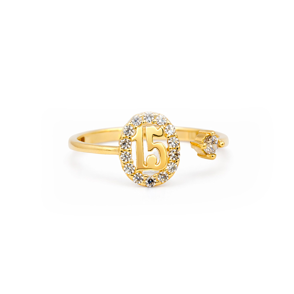 Diseño: Número 15 en óvalo con zirconias y piedra lateral