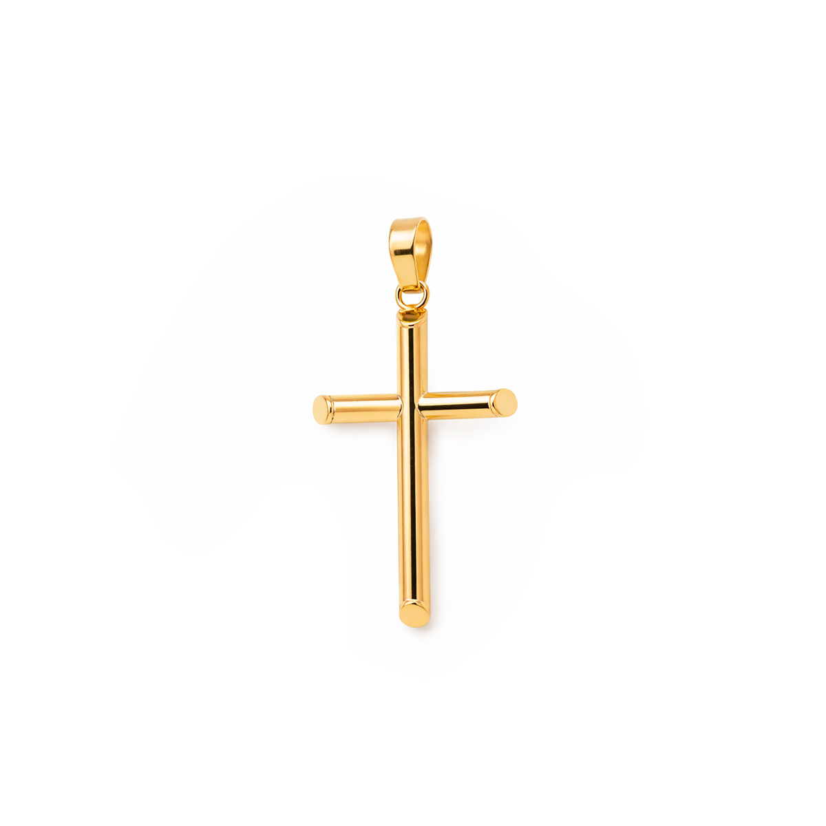 Cruz clásica tubular en Oro 10K con acabado brillante y tamaño intermedio.
